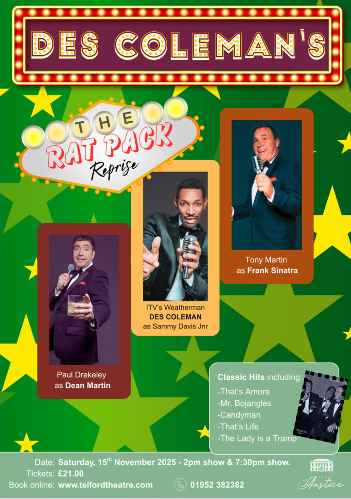 This wonderful, award-winning theatre show faithfully re-creates the music, magic and comedy of Frank Sinatra, Dean Martin and Sammy Davis Junior at the height of their fame and legendary shows in Las Vegas when they ruled the entertainment world.